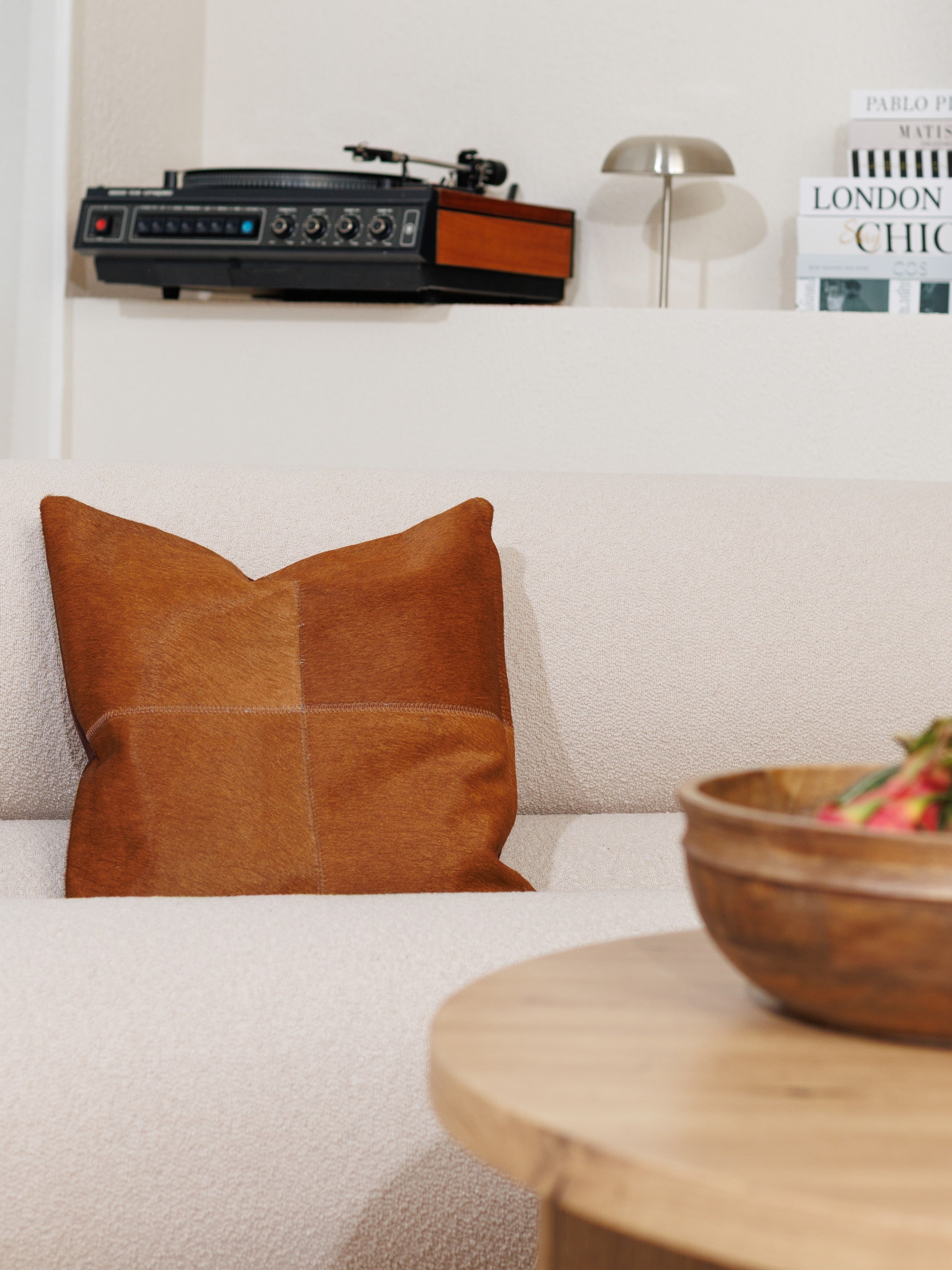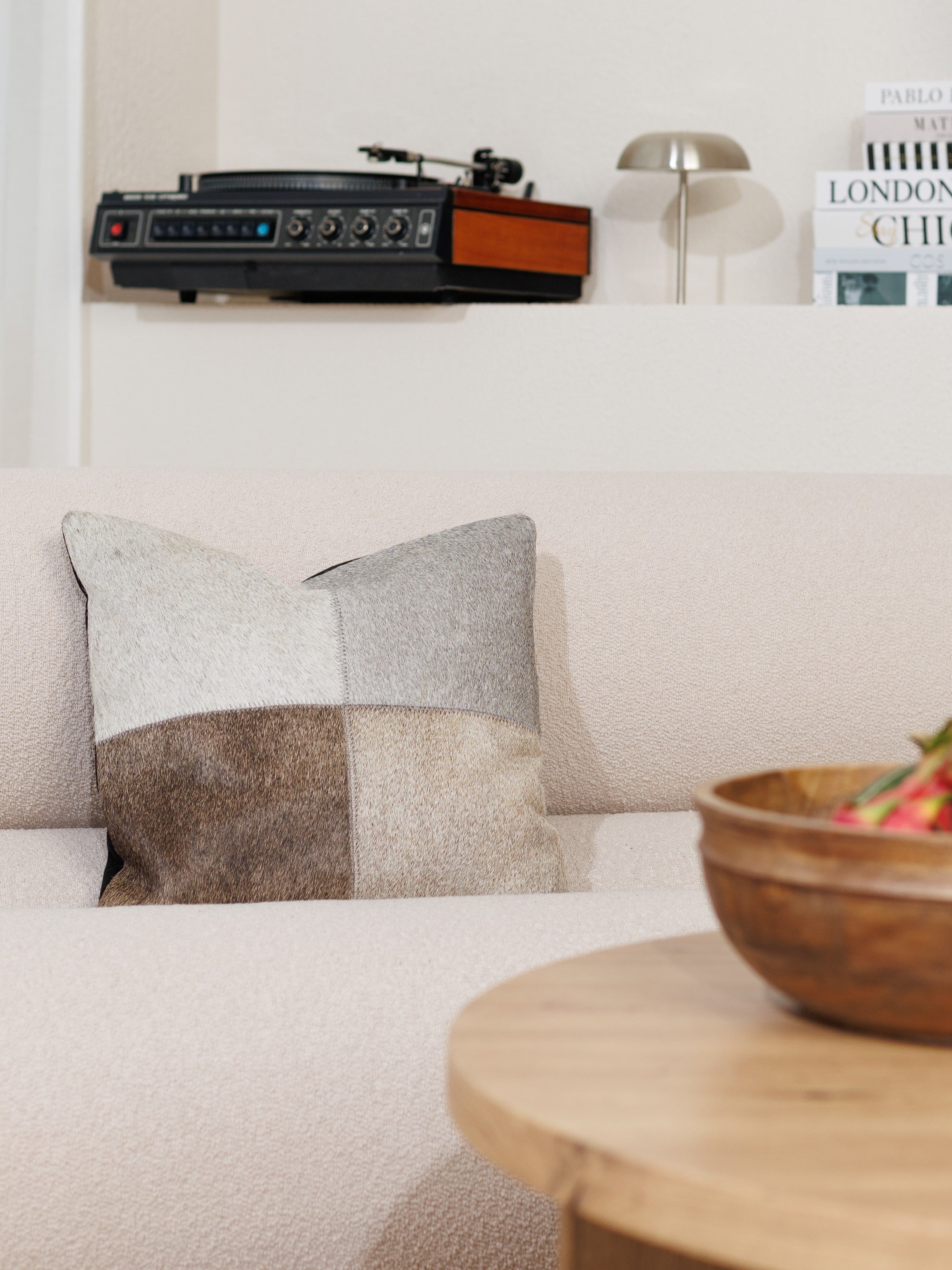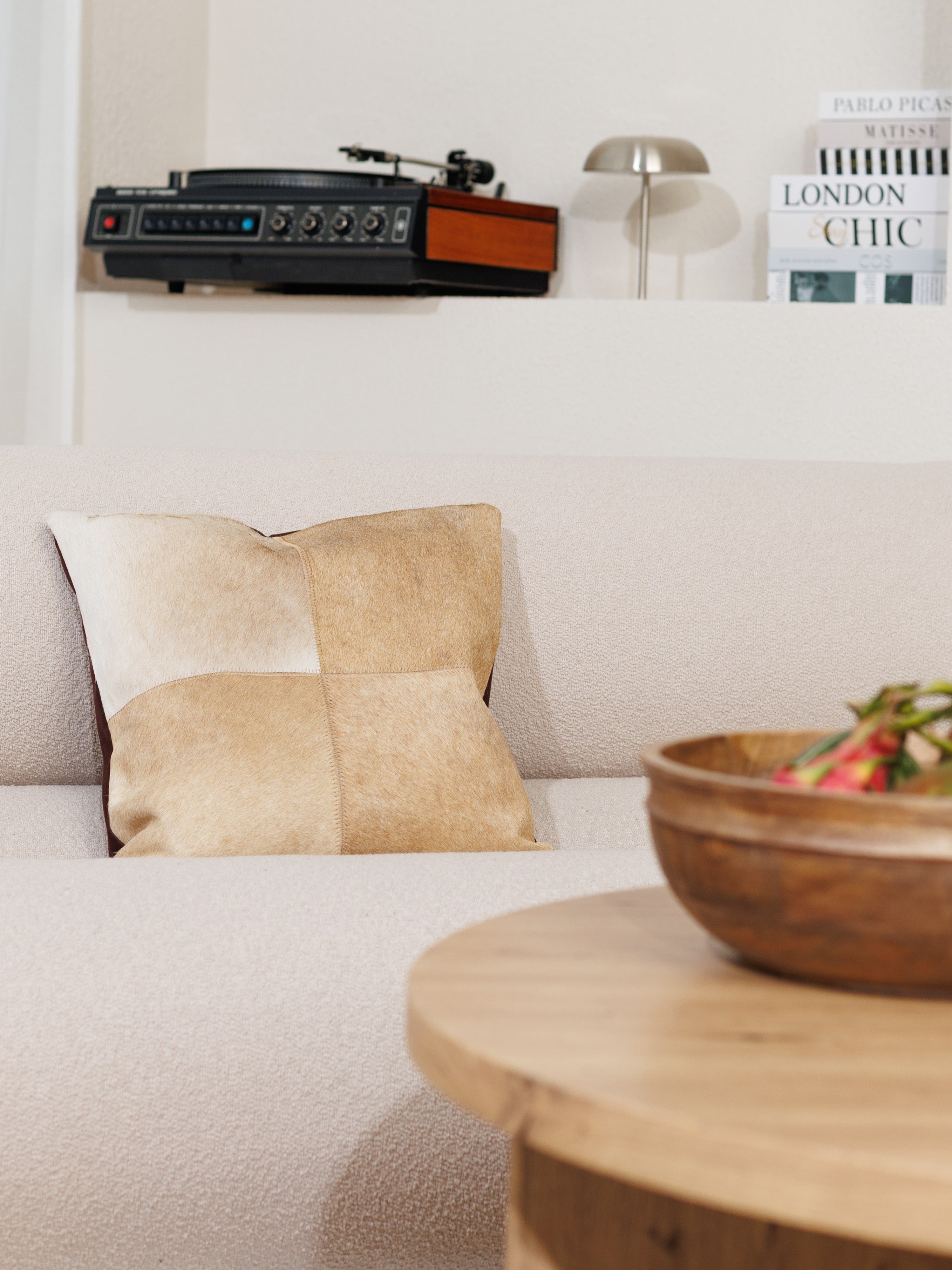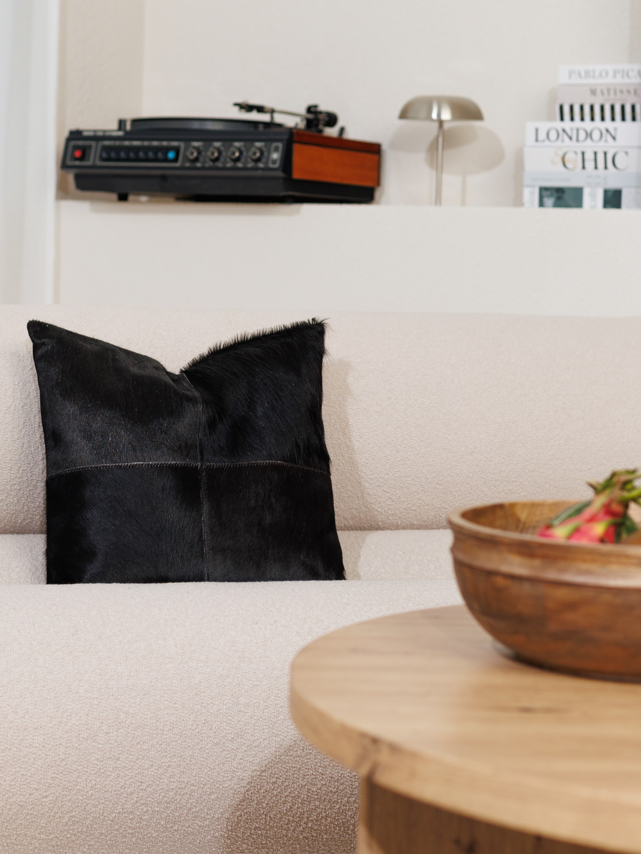 Yksittäin tai yhdessä lehmäntaljamaton tai lampaantaljan kanssa — tämä aito lehmäntaljatyyny tuo syvyyttä, pehmeyttä ja ripauksen luonnollista ylellisyyttä sisustukseesi.